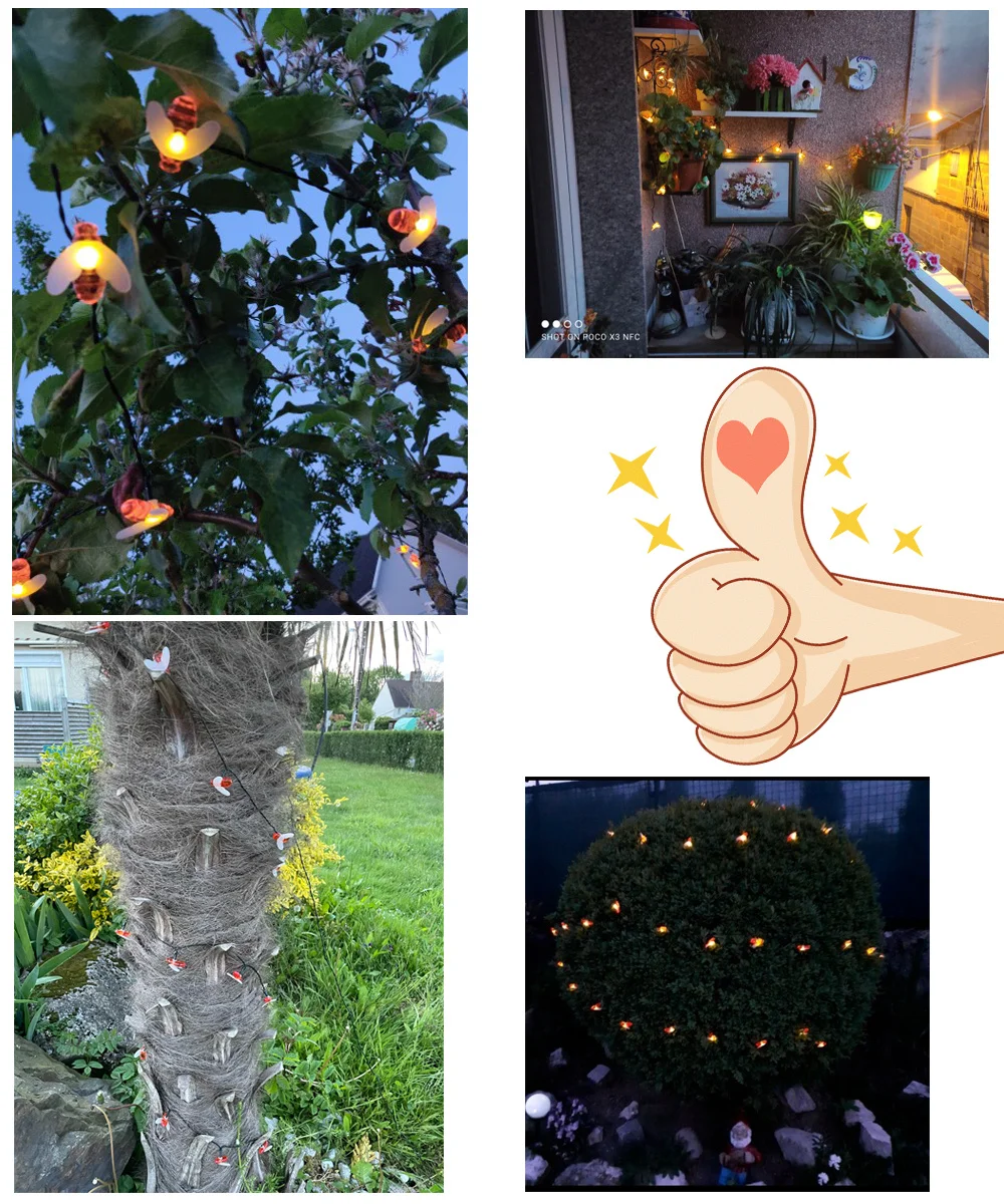 🐝 Abelhas de Mel Realistas: Luzes solares com LEDs em formato de abelhas de mel, que simulam perfeitamente abelhas reais no seu jardim.