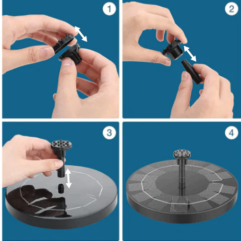 • O Aerador é uma bomba de água de acionamento solar, sem uma bateria externa, e a altura do jato de água é de 60-80cm (dependendo da força do sol). Quando o sol é fraco, a bomba de água não funcionará continuamente, e começará automaticamente repetidamente até que o sol atinja uma certa intensidade, e retomará automaticamente o trabalho contínuo.